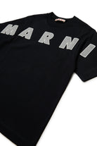 半袖クルーネックジャージーTシャツ。フロントにインスティテューショナルなロゴをあしらい、袖にはコントラストカラーの刺繍があしらわれています。綿100%で作られています。合わせやすいカジュアルなオプション。