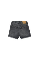 コントラストカラーのグラデーションが施されたブラックデニムのショートパンツ。裾はローカット。背中にアイコニックな縫い目。コットン100%製。