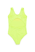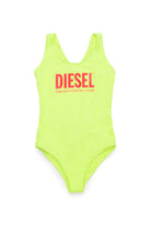 蛍光色のライクラ製ワンピース水着です。フロントにコントラストカラーのDiesel For Successful Livingインスティテューショナルロゴがあしらわれています。