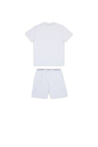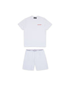 コットン・ストレッチ・ジャージーのパジャマ。フロントのハート部分にコントラストカラーでDsquared2のロゴがあしらわれた半袖Tシャツと、ブランドロゴ入りゴム入りショーツ。パジャマ袋付き。