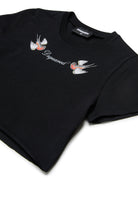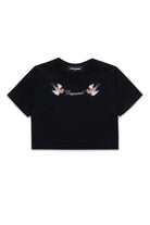ジャージー素材の半袖クルーネックTシャツ。前身頃にヴィンテージ効果のあるBirdsのプリント。裾は生成りのカット。コットン100%製。