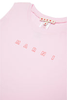 ジャージー素材のクルーネックノースリーブカバーアップドレスです。前身頃にコントラストカラーのMarni Outlineロゴがあしらわれています。コットン100%製。