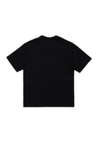 デッドストックの生地を使用し、首元にリブを施したクルーネックTシャツ。フロントに「Save me」グラフィックのデジタル プリント。