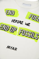 - MYAR の新しいコレクションは、気候変動会議 COP28 からインスピレーションを得ています。すべてのグラフィックのマニフェストメッセージは、「地球は汚れてきており、救ってほしいと願っています」です。