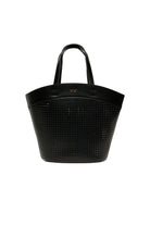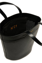 ハンドル付きの合成皮革製ショッパーバッグです。片面にN°21インスティテューショナルロゴ。インナーにキャンバス生地のドローストリングバッグ。 寸法:高さ27cm、幅22cm、奥行き13cm。ハンドルライト:15cm。