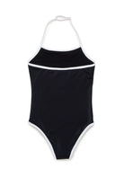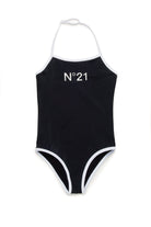 ライクラ素材のワンピース水着。フロントにN°21インスティテューショナルロゴ。コントラストカラーのパイピング。 調節可能な 紐付き。