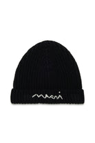 ウール混紡のリブ編みニット・ビーニーで、前面にコントラストカラーでMarniのハンドメイドロゴがあしらわれています。ソフトで暖かく、寒い季節をスタイリッシュかつ快適に過ごすための理想的なアクセサリーです。