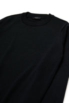 ウール混紡の長袖プルオーバーで、袖口にはコントラストカラーのストライプがあしらわれています。フロントに刺繍されたN°21のロゴが、シンプルでエレガントなスタイルを演出します。