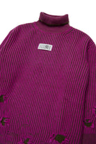ツートーンカラーのリブウールを使用したハイネックのミニドレス。上品で個性的なルックを求める人にぴったり。