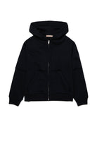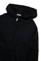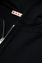 長袖のフード付きスウェットシャツで、袖の中頃に生成りのディテールをあしらい、モダンで独創的なタッチを加えています。ネック付近にあしらわれたMarniの生成りのロゴが、個性的なアクセントを添えています。
