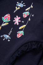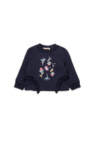 クルーネックの長袖スウェットシャツ。前身頃にカラフルで鮮やかなグラフィックがあしらわれ、Marniのロゴがプリントに組み込まれています。サイドにあしらわれたフリルがフェミニンなタッチを加え、個性あふれるオリジナリティ溢れる着こなしを演出します。