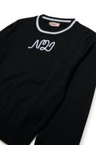 ウール混紡の長袖プルオーバー。胸元のコントラストカラーのドローストリングで作られた筆記体のロゴ「N°21」が個性的なアクセントを添えています。シンプルながら一目でそれとわかるスタイルに最適な一着です。