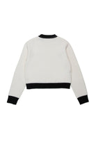 Crew-neck, long-sleeved, wool-blend cashmere sweater with ribbed colorblock cuffs, hem and collar. Features a contrasting Marni Institutional logo on the front.A stylish touch suitable for the most special occasions.