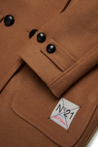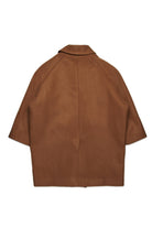 ダブルブレストのエッグシェイプ・クロスのコートは、軽い中わた入りで快適かつモダンな着心地。二色のメルトンカラーが独創的なタッチを加え、コーティング加工を施したマキシボタンが個性的です。