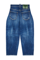 アメリア・ワイド・フィットのミディアム・ブルー・シェイド・ジーンズ。シルエットはオーバーサイズで、ウエストから足首までゆったり。脚はバルーン型で、裾に向かってやや細くなっている。妥協のないスタイル・ステートメント。