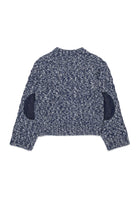 袖にデニムのワッペン、裾にディースクエアードのワッペンが施された、ツートーンカラーの糸を使用したクルーネックのウール混紡プルオーバー。ソフトで暖かく、どんなシーンにも最適。