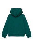 胸元にロゴが入ったリブ裾のフーディー。コットン製。