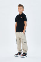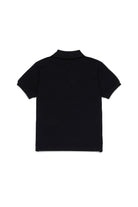 胸元にロゴがあしらわれたポロシャツ。リブ編みの襟とフロントボタンが特徴です。100%コットン製。