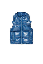 光沢のあるフード付き中わたベスト。メープルリーフのロゴがラバーで施され、ブランドのカナダらしさを表現している。カジュアルな装いにスタイルのアクセントを加えるのに最適。