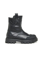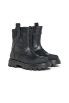 つま先にコントラストカラーのインスティテューショナル・ロゴをあしらったレザーのローブーツ。コンテンポラリーなデザインのシューズは、スタイルと履き心地を求める方に最適です。