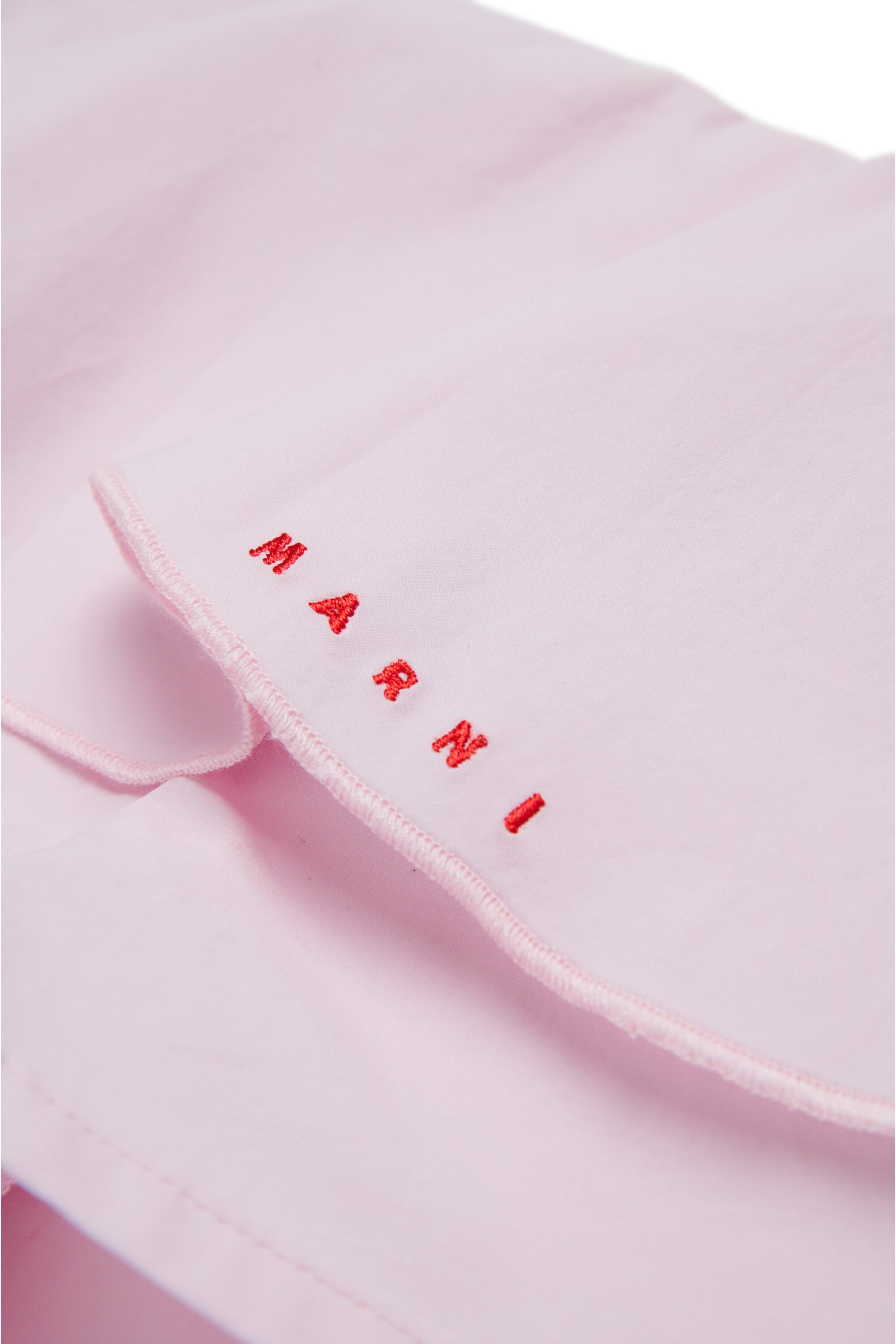 ウエストゴム入りのポプリンショートパンツです。フロントにフリル付きで、インスティテューショナルロゴがコントラストカラーでブランドロゴ入り。コットン100%製。