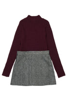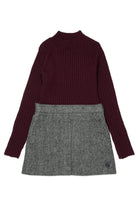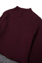 身頃はリブ編みのウール混ニット、裾はツイードで、フロントプリーツ入り。コンテンポラリーなルックに最適なミックステクスチャー。