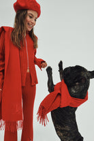ウール混リブニットのハイネックカーディガン。フロントファスナーで開閉する暖かく実用的なデザインで、ワッペンとフロントスリットがラインを強調します。