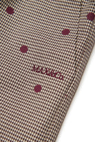 水玉プリントの千鳥格子柄ストレートパンツ。洗練されたミックス柄が、大胆なルックスと現代的なアティチュードを演出。パーティーや特別な日にも最適。