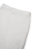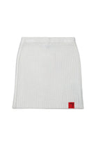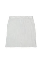 ウール混のニットショートスカート。リブ編みでシルエットを強調し、マイラー仕上げでモダンなエスプリを効かせた一着。パーティーやイブニングイベントに最適。