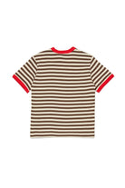 ロゴ入り100%コットンTシャツ。ストライプ柄に襟と袖口のコントラストディテール。