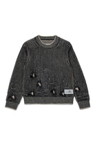 ソフトで暖かな2色リブのウールプルオーバー。繕い破りが本物の生活感を演出し、個性的で洗練されたルックスに。