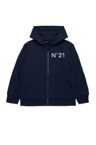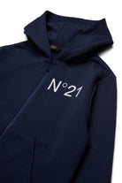 オーバーサイズのフルジップフード付きスウェットシャツ。N°21のインスティテューショナルロゴが、コントラストカラーのハートサイドにあしらわれ、スタイリッシュなアクセントを添えています。カジュアルでリラックスしたルックに最適。