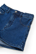 コントラストステッチと背面にパッチが施されたデニムショーツ