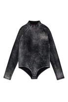 ハイネックの長袖ストレッチジャージー素材のボディスーツです。スプレー効果のあるマイラープリントとオーバルDのエンボス加工ロゴがオリジナリティを演出。クロッチの実用的なボタン留めにより、快適さとスタイルが融合しています。
