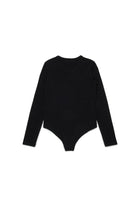 オーバルDのロゴ入りストレッチジャージー素材のボディスーツ