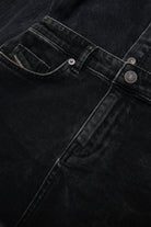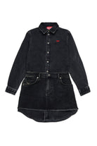 ブラックデニムのシャツドレスは、取り外し可能なスカート付き。モダンで万能なドレスは、着こなしを変えるのに理想的。