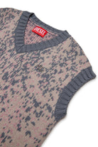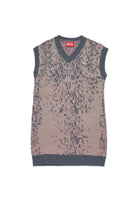 Vネックのノースリーブ・ウール混ニットドレス。Acid Rainパターンが独特の効果を与え、ハートの金属ディテールが洗練されたタッチを添えています。独創的で洗練されたルックに最適です。