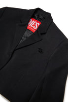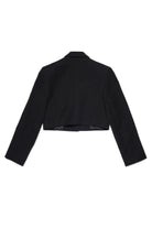 クールなウール製のクロップド・ブレザー・ジャケット。ボクシーなシングルブレスト・スタイルで、隠し2つボタン留めがデザインを引き立てています。特別なシーンに最適です。