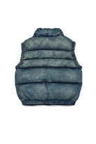ダーティーエフェクトデニムのパッド入りショートベスト