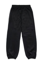 光沢のあるトリアセテートのバルーンパンツに赤いDパッチとコントラストのパイピングをあしらい、快適さとスポーティなインスピレーションを融合。ソフトで構築的なフィットは、フロントのリブ編みで強調されている。