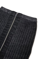 ソフトなメリノウールのリブニットを使用したショートスカート。インナープリントで陰影をつけ、紛れもないオリジナルのタッチを表現しています。