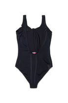 コントラストの効いたロゴ入りワンピーススイムスーツ。オリンピックスタイルとミニマルなデザインのアイテムです。