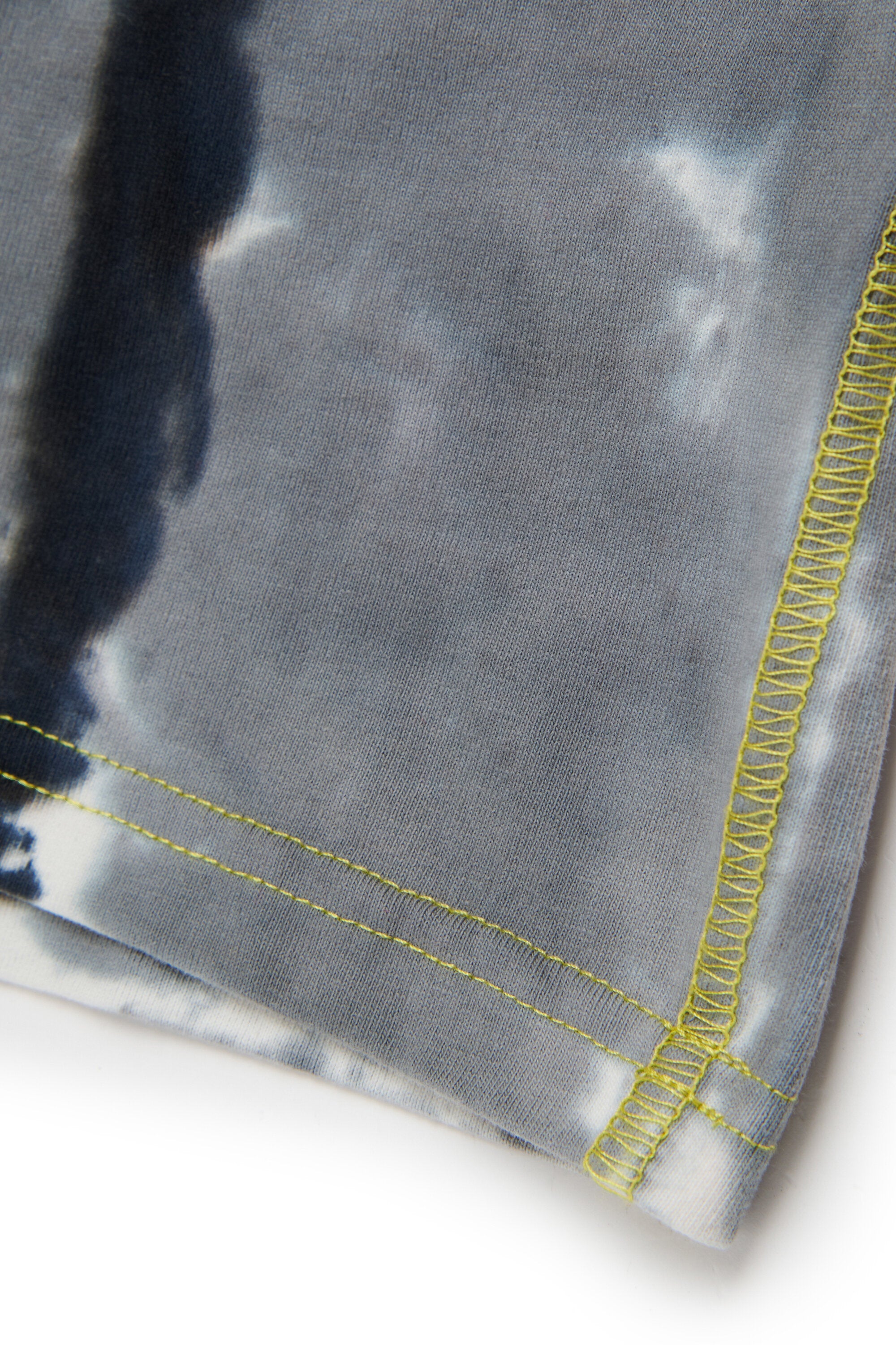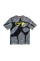 半袖のクルーネックTシャツ。オーバーサイズ。バティック技法によるパーソナライズドで、オリジナル・ミックス・カラー。フロントのハートサイドにユーズド加工のOval Dロゴ。カラーコントラストステッチのオーバーロックシーム。コットン100%製。