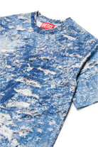 軽くソフトな手触りのジャージー素材を使用した半袖クルーネックTシャツ。オーバーサイズ。破れたデニムを模したTiger breakのだまし絵プリント。フロントのハートサイドにDiesel Denim Divisionのロゴ入り。コットン100%製。