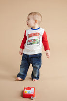 カラーブロックのディテールが施されたソフトなコットンジャージー素材の長袖Tシャツ。フロントのプリントはレーシング・ワールドからのインスピレーション。スポーティで独創的なルックに最適。