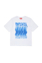 波模様のグラフィックロゴがフロントにあしらわれた、100%コットンのTシャツ。