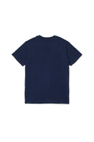 胸元にロゴがプリントされたシンプルなコットンTシャツ。