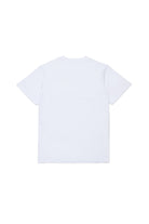 胸元にロゴがプリントされたシンプルなコットンTシャツ。