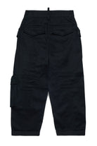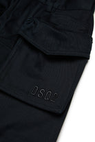 ユーティリティポケットとトーン・オン・トーンのDSQ2ロゴ刺繍が施されたギャバジンのカーゴパンツ。機能性とスタイルを兼ね備えた、強い個性を持つ一着。