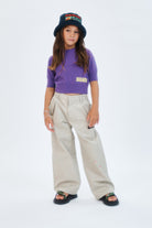 ロゴ入り&ペイント風スプレー柄パンツで、個性的なアーバンスタイルを演出。